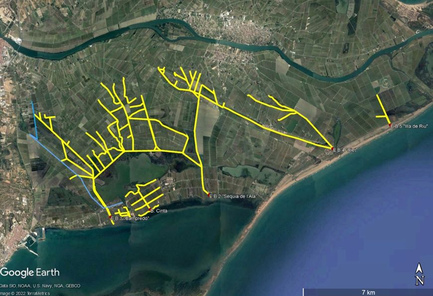 • 2 fins 22 de novembre.- Es retirarà una comporta de l’Estació de bombament núm. 1, 2, 4, 5 i dels bombaments de la Cinta i Madalenes, per tal de deixar entrar aigua procedent del mar i per gravetat, inundar els desaigües a dalt esmentats. En alguns dels desaigües, per tal de remuntar l’aigua s’hauran de realitzar bombejos amb tractors equipats amb bombes. A la zona de la Figuerola també s’habilitarà un bombament per extreure les aigües surgents i conduir-les a través del canalet de l’Anglès fins l’Encanyissada. La durada del tractament amb aigua de mar serà de 21 dies. Durant aquests dies es mesurarà la conductivitat elèctrica de l’aigua en diferents punts de la xarxa de desguàs per tal de comprovar que el tractament és l’adequat.