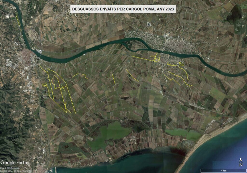 Els desguassos que actualment estan envaïts per cargol poma són els següents: