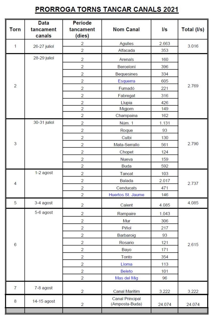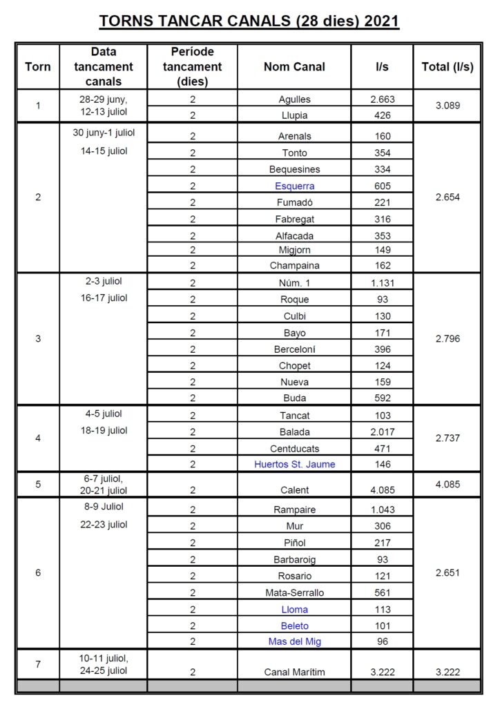 TORNS TANCAR CANALS (28 DIES)
